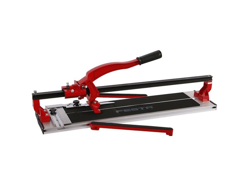 Řezačka dlažby FESTA X, maximální délka obkladu při řezu : přímý 600, 900 nebo 1300 mm, maximální tloušťka řezání obkladu / dlažby : 16 mm, kvalitní materiály i zpracování, posuv řezné hlavy zajištěn přes 6 ložisek (626 ZZ) po liště ve tvaru X - jednoduché a přesné přímé i případně diagonální řezání, pro přesné diagonální řezy přiložen stavitelný úhelník 0 - 45 °, snadné řezání i lámaní, pro lepší a přesné zlomení tři podložky z tvrzené pružné gumy, přesné měřítko, kvalitní řezné kolečko z karbidové oceli uloženo na ložisku.